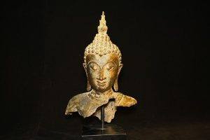 Fragment Thai Bronze Buddha Head with Wooden Base. Thailand. February 17, 2021March 16, 2015 by admin