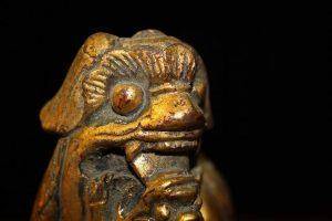 Carved Wood Gold Gilt Foo Dog with Pup, China